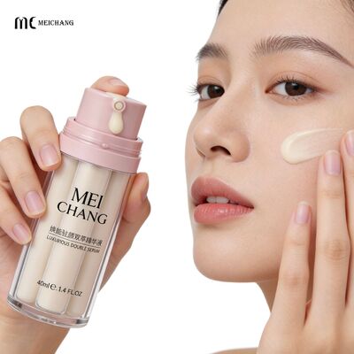Analyzing the product appearance and labeling of the MEI CHANG Dual-Extract Serum Milk reveals these core selling points, which underscore the market value of dual-chamber packaging: