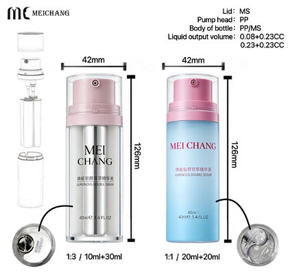 40ml Dual-Chamber Lotion Pump Bottle for 1:1 & 1:3 (20ml+20ml 10ml+30ml) Designed for High-End Serum Brands.(MC-1601)