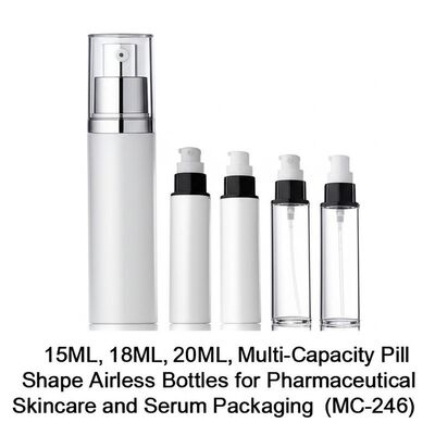 Pill-shaped airless bottles designed for sensitive skin and premium skincare brands, embodying the concept of "precise medication-style skincare." Featuring airless freshness-locking technology to preserve the potency and purity of serums. Available in multiple capacities (15ml, 18ml, 20ml, 30ml) for all scenarios, from daily routines to travel and post-aesthetic care. The streamlined pill shape offers both aesthetic appeal and ergonomic comfort. We provide comprehensive customization options (including silk-screen printing, gilding, etc.) and use ECO-friendly, recyclable/biodegradable materials compliant with EU environmental standards, helping brands create unique, safe, and sustainable packaging solutions.