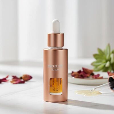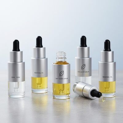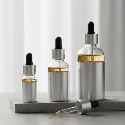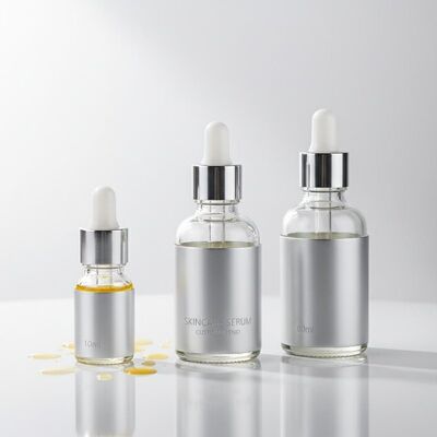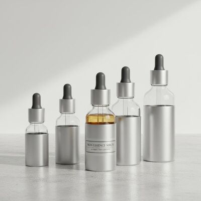 This premium dropper bottle combines a high borosilicate glass inner liner with aviation-grade aluminum exterior plating, offering the purity of glass with the durability of metal. The medical-grade silicone dropper and sealed threaded design ensure precise dispensing, leak-proof performance, and oxidation resistance - making it ideal for high-active skincare products.