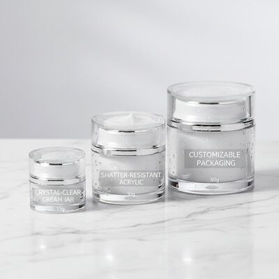 This crystal-clear, shatter-resistant acrylic cream jar is available in 15g, 30g, and 50g sizes. Made from food-grade, eco-friendly materials, it offers excellent sealing and yellowing resistance, specially designed for creams, eye creams, masks, and other skincare products. With full customization support, it is the ideal packaging solution for brands to create a high-end and distinctive skincare image.