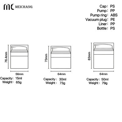 | MC-Y-537 | 15ml | 76.4mm | 56mm | 65g | PS | PP | ABS | PE | PP | PS |