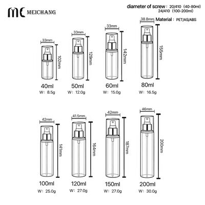 | MC-280-1 | 40ml | 102mm | 33mm | 8.5g | PET/AS/ABS |